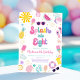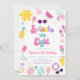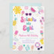 Cette invitation à l'anniversaire de la jeune fille présente d'adorables illustrations d'été colorées aux accents de fausse feuille d'or.