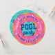 Cette invitation à la fête d'anniversaire d'inspiration rétro présente de l'eau de piscine bleu vif, un tube intérieur de beigne rose doux et une typographie amusante. Le dos a le même arrière - plan d'eau avec tous les détails importants. L'apparence est un choix amusant pour toute fête de billard pour enfants!
