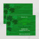 Préparez-vous à célébrer la chance des Irlandais avec cette charmante invitation Rustique en Bois Vert pour la Saint-Patrick. Avec son fond vibrant à texture de bois vert orné d'un bouquet de trèfles ludiques, ce design capture parfaitement l'esprit festif du 17 mars.
