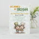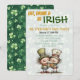 Une invitation ludique à la Saint-Patrick avec des illustrations irlandaises animées et un fond rempli de trèfles. Tous les textes et éléments sont personnalisables, et le verso assorti à motif complète le design.