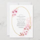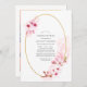 Pink aquarelle floral Celebration of Life invitation avec fleur sakura avec cadre géométrique doré personnalisable selon vos spécifications.