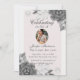 Design floral féminin classique en gris et rose. Téléchargez une photo et personnalisez votre invitation.