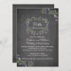 Invitation à l'anniversaire du mariage du Chalboard vintage et branché, avec un tableau noir contemporain très populaire et un cadre moderne et fleuri vert avec de jolies fleurs violettes. Pour une touche spéciale supplémentaire, le dos de notre invitation est assorti d'un tableau de bord. Invitation parfaite pour tout anniversaire, 25e, 30e mariage, 40e, 50e anniversaire, 10e, 5e anniversaire, 60e ou 75e anniversaire.