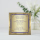 Invitation de fête pour les 50 ans de mariage avec un fond bleu roi et or avec de belles volutes dorées. Ces invitations de 50 ans de mariage bleu et or sont facilement personnalisables pour votre événement en ajoutant vos détails d'événement, style de police, taille et couleur de police, et texte. Vous pouvez choisir le fond du verso de votre choix - bleu roi ou or, il suffit de supprimer le calque que vous ne voulez pas.