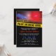 Invitation à une fête pour l'application de la loi pour une cérémonie de remise de diplômes ou une retraite de la police. Cette invitation de policier présente des lumières clignotantes rouges et bleues de voiture de police, du ruban de scène de crime jaune et un modèle de fête moderne facile à personnaliser.