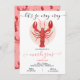 Cartes d'invitation modernes et funky pour la fête de l'écobuage de l'écrevisse. Présente une grande écrevisse prête à devenir folle pour la fête de Mardi Gras ! Couleurs rouge, orange et blanc.