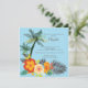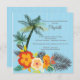 Commencez votre douche tropicale nuptiale avec nos magnifiques fleurs d'hibiscus orange et nos invitations à la douche nuptiale de palmiers. Notre élégante invitation à la douche tropicale est posée sur un arrière - plan rayé de couleur bleu ciel pour faire vraiment éclater les éléments d'invitation et a un dos de coordination.