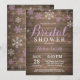 Invitation Rustic Winter Bridal Shower. Flocon de neige mauve et blanc. Invitation de Fête de l'mariée de Noël. Arrière - plan en bois rustique. Country Vintage Retro Barn.