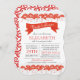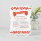Commencez votre douche nuptiale avec notre invitation moderne à la douche nuptiale parapluie. Notre douche élégante et branchée de l'amour et de l'invitation aux meilleurs voeux comporte une rangée de parapluies rouges avec une bannière contemporaine posée sur un arrière - plan blanc immaculé. Retourner l'invitation pour trouver un défilement correspondant pour une touche spéciale supplémentaire.