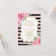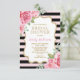 Invitation à la douche nuptiale sur le thème parisien avec arrière - plan rayé rose et noir et joli rose aquarelle