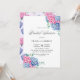 Définissez le ton d'une fête de mariage fraîche et élégante avec cette invitation personnalisable représentant des hortensias bleus et roses à l'aquarelle. Le design floral doux apporte une sensation légère et romantique parfaite pour les célébrations de printemps ou d'été. Un motif d'hortensia assorti au dos ajoute une touche soignée et coordonnée. Personnalisez votre invitation en ajoutant vos coordonnées d'événement, y compris le nom de la mariée, la date, l'heure, le lieu et les informations de RSVP. Ce design convient parfaitement aux fêtes de jardin, aux brunchs ou à toute fête de mariage avec une ambiance douce et féminine.