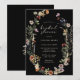 Invitation de fête de mariage bohème d'automne. Cette invitation de fête de mariage élégante et stylée présente de magnifiques fleurs sauvages aquarelles peintes à la main, disposées en une charmante couronne parfaite pour les mariages de printemps, d'été ou d'automne. Trouvez des articles assortis dans la collection de mariage bohème aux fleurs sauvages Moody Black.