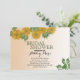 Cette illustration numérique de feuilles et de fleurs dorées rustiques est présentée au recto sur un fond ombré doré avec les informations de la fête de mariage modèle. Le verso présente des bandes horizontales de couleurs assorties. Remplissez les champs de modèle d'informations personnelles, supprimez le texte et / ou cliquez sur personnaliser pour sélectionner une couleur, une taille et un style de police que vous préférez.