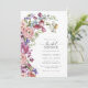 Cette invitation de douche de mariée colorée présente une symphonie de fleurs sauvages aux tons de bijoux vibrants, méticuleusement détaillées dans des nuances époustouflantes de pourpre, magenta, bordeaux, rose blush, bleu poussiéreux et verdure de sauge luxuriante. La texture de l'aquarelle peinte à la main confère un caractère unique à chaque pièce, garantissant que vos invitations sont vraiment uniques. Préparez-vous à capturer la joie et l'excitation de votre douche de mariée printanière ou estivale à venir avec ces invitations florales colorées et élégantes.