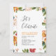 Célébrez votre jour spécial avec cette invitation de fête de fleurs tropicales qui présente une typographie simple et élégante ainsi que des motifs floraux. Ce modèle de conception est entièrement personnalisable.