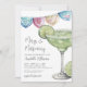 Invitation à la Fiesta de Mariage. Célébrez la future mariée avec ce design coloré et festif, parfait pour une douche de mariage sur le thème des margaritas ou de la fiesta. Le devant présente un verre à margarita vert aquarelle joyeux entouré de tranches de citron vert piquantes sur le côté droit, ajoutant un élément ludique et vibrant.