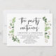 Moderne calligraphie noire, thème estival de verdure et de feuilles, carte d'invitation de mariage en fuite (la fête continue). Elle est parfaite pour votre réception de mariage en fuite / fête de célébration après le mariage. Ajoutez vos détails dans la même police / lettrage noir.