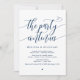 Belle Calligraphie Bleu Nuit Moderne, Faire-Part de Mariage en Intime, Carte d'Invitation (La Fête Continue). C'est parfait pour votre réception de mariage et fête de célébration post-mariage. Ajoutez vos détails dans la même police / lettrage.
