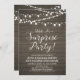 Célébrez votre jour spécial avec cette invitation de fête surprise rustique ! Ce design présente une typographie de script stylée et des guirlandes lumineuses sur un fond en bois rustique. Parfait pour une fête de jardin, une fête de grange ou toute autre fête surprise.