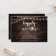 Belle célébration de fête de mariage féérique, carte d'annonce / invitation de mariage en fuite, dans un design de bois de ferme rustique, avec guirlande lumineuse. C'est parfait pour votre réception de mariage et fête de célébration post-mariage. Ajoutez vos détails dans la même police / lettrage.