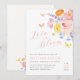 Annoncez votre prochaine fête de fiançailles avec cette invitation fantaisiste mettant en vedette un magnifique arrangement floral à l'aquarelle et des papillons ludiques. La palette de couleurs vibrantes mais douces de rose blush, de jaune ensoleillé et d'orange doux évoque un sentiment de joie et de nouveaux départs. L'écriture charmante "Love in Bloom" ajoute une touche personnelle et romantique, tandis que l'œuvre d'art florale détaillée assure une impression mémorable. Ce design est idéal pour une fête de fiançailles sur le thème du jardin ou inspirée de la nature, créant une scène charmante pour une journée spéciale. Les invités apprécieront sûrement la touche artistique et les détails réfléchis.