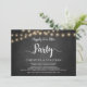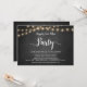 Belle fête de mariage heureux pour toujours, carte d'annonce / invitation de mariage en fuite amoureuse, dans un style rustique de ferme au tableau noir, conception de guirlande lumineuse. C'est parfait pour votre réception de mariage et la fête de célébration après le mariage. Ajoutez vos détails dans la même police / lettrage.
