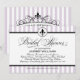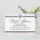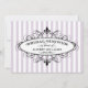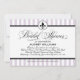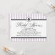 Une invitation de douche nuptiale fraîche et féminine de mariage parisien avec des rayures lavande et blanches avec un médaillon de fleur de lis et un accent de ruban noir pointillé. Les tons violets doux donnent au design inspiré de la France une touche romantique et contemporaine tandis que la calligraphie et la typographie serif maintiennent une élégance classique. Tout le texte est entièrement personnalisable.