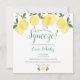 Comprend des citrons de verdure, cette invitation de fête de mariage carré élégant et amusant peut être personnalisée avec les informations de votre événement spécial et vos initiales de monogramme au verso. Conçu par Thisisnotme©