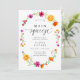 Célébrez le fait qu'elle ait trouvé l'amour de sa vie avec cette invitation de fête prénuptiale lumineuse et joyeuse. Avec sa couronne aquarelle de oranges fraîches et de fleurs roses et orange vibrantes, ce design capture l'énergie joyeuse d'une célébration estivale. Les détails doux et peints et la palette de couleurs vives créent un look frais et romantique qui se sent à la fois ludique et raffiné.
