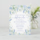 Ces invitations de fêtes de mariage élégantes, classiques et féminines "Something Blue Before I Do" présentent des fleurs aquarelles bleues et blanches et une verdure vaporeuse. C'est une vision moderne de l'élégance nuptiale. Honorez votre future mariée et invitez les invités à la célébration avec ces invitations exquises.