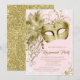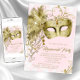 Invitation Fête de Mascarade en Rose et Or Pailleté