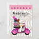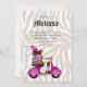 Invitation Fête de Mode Scooter Femme Léopard Rose génial pour une soirée d'enterrement de vie de jeune fille.