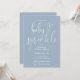 Cette invitation de fête de naissance bébé écriture élégante bleu poussiéreux peut être personnalisée avec toutes vos informations de célébration spéciales et les détails du code QR de la liste de naissance au verso. Conçu par Thisisnotme©