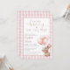 Cette invitation à la fête de naissance charmante présente un petit bébé lapin tenant des ballons et un fond à carreaux rose. Conçue par Thisisnotme©