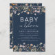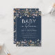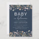 Invitation Fête de Naissance Bébé Fleur Sauvage Bleu de Nuit