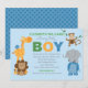 Invitation Fête de naissance d'animal de jungle bleue pour bé