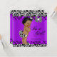 Fête de naissance de fille vache léopard violet. Fête de naissance afro-américaine ethnique. Impressions de vache léopard sauvage noir et blanc amusantes et images de nœud violet Diamants. Élégant. Baby Shop Vintage a créé ce design NOTEZ que toutes les images NE sont PAS des diamants ou de vrais nœuds !!