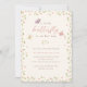 Invitation de fête de naissance fantaisiste avec des papillons pastel rose et violet et un cadre floral mignon autour du bord de l'invitation. "Une petite papillon est en route" apparaît en haut en jolie écriture rose et en typographie sérif élégante. Personnalisez facilement ce modèle en ajoutant vos informations de fête.