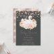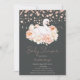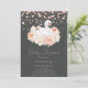 Jolis points rose gold et bébé cygne avec des fleurs sur fond gris et rose gold. Ces invitations pour la fête de naissance sont facilement personnalisables pour votre événement en ajoutant simplement vos coordonnées.