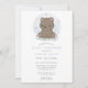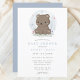 Invitez vos amis et votre famille à célébrer l'arrivée imminente avec cette charmante invitation à la fête de naissance mettant en vedette un ours brun aquarelle adorable. Le design simple et mignon, associé à des couleurs douces, crée une atmosphère délicieuse parfaite pour une fête de naissance de garçon. Personnalisez avec les détails de votre événement pour créer une invitation unique et mémorable que vos invités adoreront.