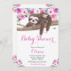 Invitation Fête de naissance Paresseux Floral Rose et Bébé