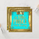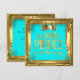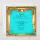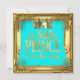 Fête de naissance Prince garçon. Couronne dorée Or Turquoise Bleu sarcelle vert, Fête adorable pour un bébé garçon. Fond turquoise et cadre doré. Invitation à une fête "C'est un garçon". Cartes d'invitation pour la fête