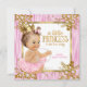 Fête de naissance Princesse Bébé Fille Rose Soie Or Floral Blanc Fleurs Faux Diamant. Invitation Fête de naissance Fille Tutu Ballerine Royale Or et Blanc. La petite princesse en or feuille est en route. Design floral élégant or diamant avec jolie bébé fille et couronne rose or. Fête de naissance Brunette