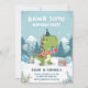Invitation Fête de neige préhistorique de l'hiver avec un T-R
