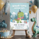 Célébrez la grande journée de votre petit avec cette adorable invitation d'anniversaire de dinosaure d'hiver RAWR-issime ! Avec un T-Rex vert mignon portant un chapeau de fête et une écharpe, entouré de montagnes enneigées, de pins, de ballons et de cadeaux, cette invitation est parfaite pour une fête d'anniversaire hivernale cosy. Facile à personnaliser avec le nom de votre enfant, son âge, les détails de la fête et les informations de RSVP.