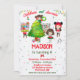Joyeux petit Noël invitation Noël fête de Noël invitation Noël invitation de fête de Noël. Célébrez et décorez avec ce sapin de Noël décorant l'invitation d'anniversaire avec des petites filles en chandail moche, arbre de Noël et cadeaux. Modifiez simplement ce modèle facile à utiliser dans le menu Personnaliser pour le rendre spécial.
