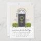 L'invitation de la fête de la maison de vacances de charme comporte une illustration de porte noire esquissée flanquée de buissons verts et d'une couronne de Noël, avec "nouvelle maison pour les vacances" en écriture manuscrite chic. Personnalisez avec vos détails de célébration sous.