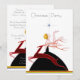Cartes d'invitation personnalisées pour célébration de fête de Noël sur le thème de l'art déco vintage avec une flapper et un cerf. Une belle illustration antique art déco représentant une flapper glamour des années 1920 / 1930 avec une robe noire élégante regardant une étoile au-dessus d'elle. Il y a un cerf rouge élégant avec des bois qui bondit au premier plan. Invitations doubles faces, classe, chic, simples, romantiques, féminines, classiques, démodées, mignonnes et fantaisistes pour les fêtes de fin d'année. Parfaites pour les dîners de fête officiels et les événements d'entreprise, ainsi que les célébrations en famille. Tout le texte est entièrement personnalisable selon vos besoins - de nombreuses polices parmi lesquelles choisir. Ces invitations personnalisées, vintage, originales et uniques, magiques, jolies, sophistiquées et à la