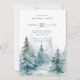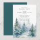 Invitation à la fête de Noël avec des pins d'hiver à l'aquarelle et une typographie moderne.