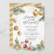 Invitation modifiable pour une fête de Noël avec des boules dorées, heureux pour toujours